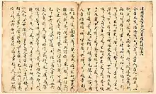 Wakan konkōbun (和漢混淆文) is a Japanese writing style which uses a mix of Japanese and Chinese writing styles that intermingles Japanese and Chinese character readings, grammar, and lexical styles. It came from the practice of using marks, added to Chinese characters, to indicate the order in which to read them for Japanese speakers.[1] Wakan Konkō Bun was often written in Hiragana and derived from Japanese reading conventions for classical Chinese. Wakan Konkō Bun shows that the development of written Japanese is inseparable from the use of literary Chinese.[2] It can be considered a transition style between pure kanbun and modern Japanese.