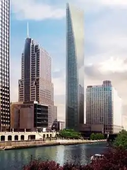 Waldorf-Astoria Hotel and Residence Tower Chicago was a planned[3] hotel and condominium skyscraper that would have been 1,265 feet (386 m) tall. The Prime Group was in charge of the project, which was proposed at a cost of $610 million. The building would have been located one block from the Chicago River,[1] and north of the Sheraton Chicago in the Streeterville neighborhood of the Near North Side community area of Chicago.[4] Another of the building's developers, the Fordham Company, was also the initial developer of the now-cancelled Chicago Spire.[1][5]