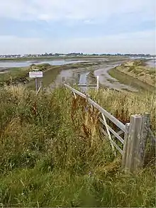 The southern sea wall of Wallasea Island with the estuary of the River Roach to the right.