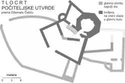 The earliest mention of or recorded reference to Počitelj is in charters of king Alfonso V and Fridrich III from 1444 to 1448. However, the village most likely predates these documents. The exact date can't be pinpointed but it is likely that fortified town along with its complementary settlements was built by Bosnian king Tvrtko I sometime in 1383.[1][3][4] Počitelj was considered the administrative center and center of governance of Župa Dubrava (county), while its westernmost point gave it major strategic importance. The fortress and its podgrađe during this time was under control of Kosača noble family, whose chiftain Stjepan Vukčić and his hair Vlatko Hercegović During the years following Ottoman conquest of Bosnian realm, between 1464 and 1471, the town was fortified by Vladislav Herzegović with a support of Dubrovnik, king Matthias Corvinus of Hungary and the Pope. From this point the walled town of Počitelj evolved in the period from the 16th to the 18th centuries. Architecturally, the stone-constructed parts of the town are a fortified complex, in which two stages of evolution are evident: medieval, and Ottoman.[1][3][2]
