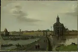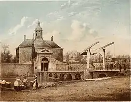 In 1787, the Patriotten city government sought to protect the city against the Prussians by erecting 27 defensive posts along the seven entrances into the city. The polders between each of these posts were flooded. The Prussians were unable to overcome these defensives, but managed to get by the posts using the poorly defended entrance by the Haarlemmermeer.[5]
