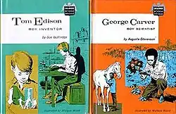 - ↑ Guthridge, Sue. Tom Edison, Boy Inventor. Illustrated by Wood. New York : Aladdin Books; London : Collier Macmillan, 1986, c1959