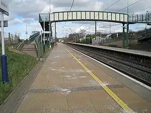 The station is unstaffed, but a ticket machine is provided in the waiting shelter on platform 2 to allow intending passengers to buy before boarding or for collecting pre-paid tickets. A shelter is also provided on platform 1. Train running information is offered via CIS screens, customer help points, automated announcements and timetable poster boards. Step-free access to each platform is available via ramps from the nearby road and car park.[2]
