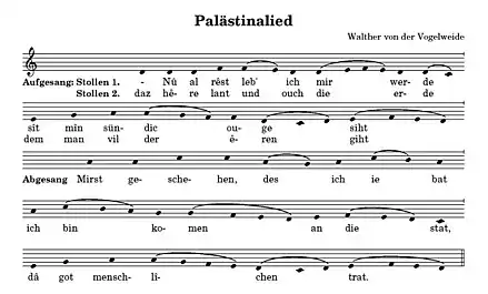 • The complete melody of the Palästinalied, "Nû alrêst lebe ich mir werde" (L14, 38; C 7)