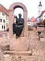 Statue of Walther von der Vogelweide by Heinrich Scholz, in Duchcov (Czechia), where a park is named after him.
