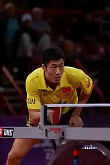 Wang Liqin (simplified Chinese: 王励勤; traditional Chinese: 王勵勤; pinyin: Wáng Lìqín; born June 18, 1978, Shanghai) is a retired Mainland Chinese table tennis player. He began playing at the age of 6 and was picked for the Chinese men's national squad in 1993 when he was only 15 years old. He holds three majors (3 World Championships). He has been ranked #1 by ITTF for 25 consecutive months, from September 2000 to September 2002, which is the second-longest period for being consecutive #1 of the world as of January 2011. At the end of 2013, Wang Liqin retired from the national team.[1]