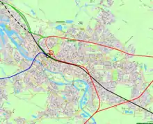 In June 1986 a third track between Buchholz (branching to the Maschen Marshalling Yard) and Rotenburg went into service,[5] in order to be able to better handle goods and passenger traffic alongside one another. In fact, in connexion with that the Rotenburg-Verden and Nienburg-Minden lines were to be doubled in order that goods traffic could be diverted from the Ruhrgebiet-Bremen section onto the four-track Hamm-Minden line. These plans have however had to take a back seat.