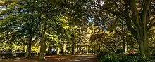 The park was opened in July 1921 as a tribute to the 2,587 Coventrians who died between 1914 and 1918 fighting in the First World War.[2] Coventry Council used money donated by the public to purchase the land from the Lords of Styvechale Manor, the Gregory-Hood family, when it was little more than a large grassed area that once formed Styvechale common.[3] In the north of the park, the landscaped gardens and sports areas were created in the late-1920s and 1930s,[3]