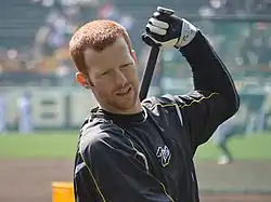 Farris' 2002 Gatemen returned 2001 MVP Murton, who was out with a broken hand during the first half of the season. He returned to hit .400 in 16 games in the second half, and also won the league's All-Star Game Home Run Derby.[79] In the playoffs, Wareham disposed of Cotuit in the semi-final series and met Orleans in the championship round. The star of Game 1 was 6-foot-4 Gatemen righty Kevin Guyette, who tossed a five-hit complete game and allowed just one run in Wareham's 5–1 victory at Eldredge Park. The late-inning fireworks in Game 2 began when Cards manager Carmen Carcone and pitching coach Kelly Nicholson were tossed in the eighth for arguing a balk call. The game went to the bottom of the ninth with the Cardinals clutching a slim 2–1 lead. It looked as though the series would be headed back to Orleans for Game 3 after the first two Gatemen made outs, but Murton poked a single that started a championship rally. Murton moved to third on a David Murphy single, and came home on an Orleans error to tie the score. With the Clem Spillane crowd in a frenzy, Brown University's Matt Kutler promptly thumped the game-winner off the left-field fence, bringing in Murphy and securing Wareham's second consecutive league crown. For his title-clinching poke, Kutler was named playoff MVP.[80][81]