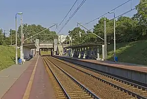 Warszawa Żwirki i Wigury railway station is a railway station in the Ochota district of Warsaw, Poland. It is served by Koleje Mazowieckie, who run services from Warszawa Wschodnia to Góra Kalwaria or Skarżysko-Kamienna.