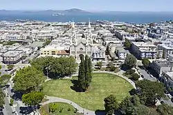 In the 19th century, the area was used by the Mexican rancher Juana Briones to grow potatoes and raise cattle, before it was designated a city square in 1847 when surveyor Jasper O'Farrell laid out San Francisco's street grid.[1][2] It became an unofficial dump next to a cemetery, but by the 1860s, it hosted Fourth of July celebrations, and later Columbus Day celebrations and Italian festivals.[2]