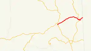 SR 272 begins as Canyon Street in Colfax at an intersection with Main Street, signed as US 195. The highway passes Colfax Cemetery before leaving Colfax and traveling northeast along the Palouse River into farmland. SR 272 turns southeast into Palouse, crossing the Palouse River and becoming Church Street before an intersection with Division Street, signed as SR 27. The highway turns south and east onto Echanove Avenue concurrent with SR 27, crossing a Washington State Department of Transportation (WSDOT) rail lube before turning south onto Division Street and splitting off.[3] SR 272 continues east as Main Street and leaves Palouse, traveling northeast over the WSDOT rail line towards the Idaho state line, where the highway becomes SH-6.[4] SH-6 continues east for 5.711 miles (9.191 km) along the Palouse River towards Potlatch, Idaho.[5]