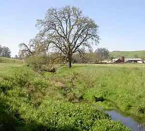 The original native riparian vegetation was likely riparian woodland, with Valley Oak savanna and grassland on the upland east and west.[3] The native habitats have been largely altered or replaced, due to the modern uses of grazing, agriculture, and urban development. In stream nitrate concentrations are noticeably higher for Washoe Creek than other watercourses within the Laguna de Santa Rosa watershed.[4] The lower reach is under consideration for a restoration project.[5]