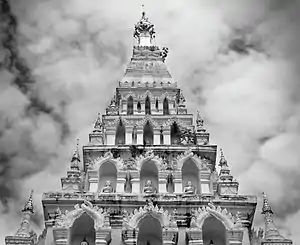 The current buildings are from a renovation in 1908 CE by a Burmese trader. Because of this many of the decorations of the wat are Burmese in style. For example, all but one of the Buddha images on the chedi are wearing the yellow Burmese colourings rather than the white Thai colours.