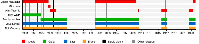 • Jason McMaster – vocals (1982–1988, 1999–2009, 2023–present)