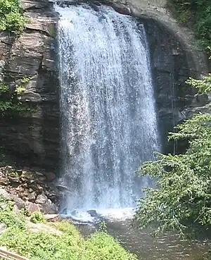 Many of the waterfalls in the state are located in Transylvania County, which is called "The Land of Waterfalls". This is due to the orographic lift that results in the area having one of the highest average rainfalls in the United States (90 inches per year).[1]