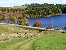 Overlooking Frederick Lake from the Isaac Wile Hill. The Allan Wile Hill is on left horizon and the William Wile Hill is just left of center. Allen was the son of Isaac and William was Isaac's brother.