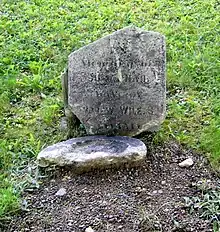 Susannah Fiendel Wile's (1786–1878) gravesite, Waterloo, Nova Scotia. This grave is within meters of her sons George, Michael, William, Isaac, and David whose grave is unmarked.