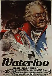 Waterloo is a 1929 German silent war film directed by Karl Grune and starring Charles Willy Kayser, Charles Vanel and Otto Gebühr.[1] It depicts the victory of the Allied Forces over Napoleon at the Battle of Waterloo in 1815.