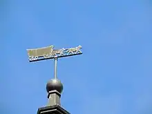 The tower was built on a site once cleared by Betzner's son near what is now the Doon neighbourhood of Kitchener.[2] It stands on a ridge overlooking the Grand River, opposite a water treatment plant.[2] The 18.9-metre (62 ft) tapered tower is built of rounded fieldstone, which had been collected over time from the surrounding 200 acres (810,000 m2) of land.[21][25] It is topped by a weather vane shaped as a Conestoga wagon.[2] In 2009, the weather vane was restored, and the tapered copper roof was replaced.[2][26]