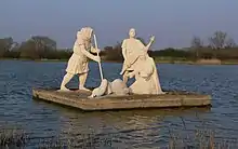 Further south is King Lear's Lake, a popular fishing lake which can be circumnavigated and is popular with people walking dogs and cyclists. A statue on the western side of the lake depicts the final scene of Shakespeare's play King Lear. The lake is also used for open water swim training by Leicester Triathlon Club, and for water training of Newfoundland Dogs.