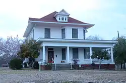 The Waters House is a historic house at 515 Oak Street in Fordyce, Arkansas. The 2+1⁄2-story Foursquare house was designed by Charles L. Thompson and built in 1907, and is one of the finest Colonial Revival houses in the city. It has a hipped roof with flared eaves, and cross gables on the sides. The main facade features a projecting bay that rises the full two stories, and is topped by a gable with dentil molding and flared eaves. A single-story porch wraps around two sides of the house.[2]