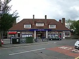 An opportunity arose in 1927 for another route to extend the line into the centre of Watford. Through a third party, the Metropolitan was able to purchase an existing building at 44 Watford High Street together with two-and-a-half acres of backlands, with the intention of creating a terminus in the town centre.[10] The possibility of a single-track extension in tunnel—either from the existing station or following a diversionary route around the station—was explored, but costs were extremely high and no Parliamentary powers were sought. The High Street building was leased out and was eventually disposed of by London Transport in 1936,[19] and today Watford station remains the terminus of the line, approximately one mile from the town centre.[10][20]