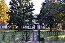 The Watson-Sawyer House is a historic house at 502 E. Parker St. in Hamburg, Arkansas. It was built in 1870 by E.D. Watson, an early settler of Ashley County, and is one of the finest houses in the county. The two-story house was built entirely out of oak, and features a two-story pedimented front portico supported by fluted Doric columns. The pediment is decorated with ribbon-like woodwork, which is repeated on the gable ends of main roof. Each floor on the front facade has a centrally-located door with sidelights, flanked by pairs of windows.[2]
