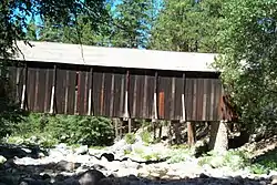 The Wawona Covered Bridge is a covered bridge spanning the South Fork Merced River near Wawona, California, in Yosemite National Park. The open bridge (without the covering) was built by Galen Clark, the steward of what was then called the Yosemite Grant, in 1868, without its cladding. The open bridge was a component of Clark's proposed new road from Wawona to the Yosemite Valley. Clark was unable to complete the road, which he sold to the Washburn Group of investors along with his stopover lodging (Clark's Station) in 1874. In mid-1875 the Washburn Group completed the road to Yosemite Valley. It is one of twelve remaining covered bridges in California.[2]