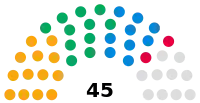 The Liberal Democrats and Greens sit together as the "Alliance for Wealden" group, which forms the council's administration. Of the independent councillors, six sit as the "Independent Group" and the other four form the "Independent Democrats".[12] The next election is due in 2027.