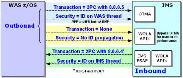 In 8.0.0.4 (and 8.5.0.1) support updated to include RRS transaction context assertion from IMS dependent regions into WAS over WOLA: