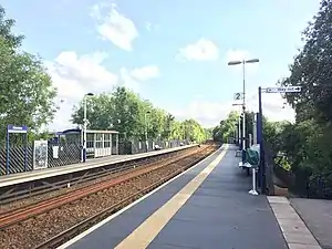 Weeton railway station serves the villages of Weeton and Huby in North Yorkshire, England. It is located on the Harrogate Line 11.5 miles (19 km) north of Leeds and operated by Northern who provide all passenger train services.