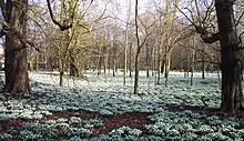 Welford Park is a private residence, and for most of the year neither it nor its grounds are open to the public. However, in a tradition that is now over 50 years old, the grounds are opened to enable visitors to view the year's bloom of snowdrops and, to a lesser extent, aconites. The flowers thrive on the chalky soil, forming a white carpet across the estate's riverside beech woodland.[9]
