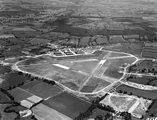 The airfield was originally opened in 1941 constructed in the typical Class A airfield design, the main unit to use the airfield was No. 22 Operational Training Unit RAF which flew Vickers Wellingtons and Avro Ansons for RAF Bomber Command from 14 April 1941.[4]