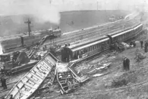 The leading bogie of the locomotive derailed on hitting the trolley, but the driving wheels did not; the engine continued onwards until it hit a diamond crossover at the north end of the station when it became completely derailed, detached from its tender and ended up facing backwards. The second passenger coach was completely wrecked. Both enginemen and five passengers were killed.