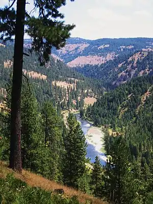 The Wenaha River is a tributary of the Grande Ronde River, about 22 miles (35 km) long,[4] in the U.S. state of Oregon. The river begins at the confluence of its north and south forks in the Blue Mountains and flows east through the Wenaha–Tucannon Wilderness to meet the larger river at the small settlement of Troy.[7] A designated Wild and Scenic River for its entire length,[4] the stream flows wholly within Wallowa County.[2]