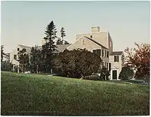 Since circa 1750 Wentworth's son Major John Wentworth had been assembling a rural property in the area on the outskirts of Portsmouth along a back channel of the Piscataqua River known as Little Harbor.[8] It included a 100-acre (40 ha) working farm, and residential space.[9] Acquisition of outlying country farms was characteristic of Portsmouth's urban mercantile elite.[8]