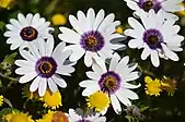 The area of Postberg, where the carpets of Spring flowers can be seen, is only open during the months of August and September. The most common flower species are Suurvy (Carpobrotus edulis), Elandsvy (Carpobrotus acinaciformis), Gousblom (Arctotis hirsuta), Bokbaai vygie (Dorotheanthus bellidiformis), White rain daisy (Dimorphotheca pluvialis), Sporrie (Heliophila coronopifolia), Magriet (Ursinia anthemoides), and Soetuintjie (Moraea fugax).[8]