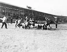 Rice later hosted Notre Dame, Texas A&M, and LSU in football competitions at the ballpark in the 1915 season.[27][28] In 1929 the first edition of the Prairie View Bowl, which was the first bowl game played by historically black colleges and universities, took place at the ballpark between the Prairie View A&M Panthers and Atlanta Lions.[29]