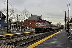 The adjacent High Street grade crossing, and the Canal Street crossing 0.2 miles (0.32 km) southeast, are the only grade crossings on the line south of Wilmington. Elimination of the High Street crossing was considered in 1932, but not implemented.[6] The depot structure, built in 1886, was demolished in the 1960s.[7][8] The decorative weathervane from the roof of the station was acquired by the Henry Ford Museum in Dearborn, Michigan in the 1950s.[9]