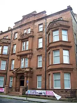 The drill hall was designed by George Bell of Clarke & Bell as the headquarters of the 1st Lanarkshire (Glasgow 1st Western) Volunteer Rifle Corps and was completed between 1895 and 1897.[1] This unit evolved to become the 5th Battalion, The Cameronians (Scottish Rifles) in 1908.[2] The battalion was mobilised at the drill hall in August 1914 before being deployed to Western Front.[3] The battalion amalgamated with the 8th Battalion to form the 5th/8th Battalion, The Cameronians (Scottish Rifles) in 1921[4] and then converted to a searchlight regiment in 1938 and to a light anti-aircraft regiment in 1942.[4]
