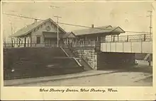 The Boston and Providence Railroad (B&P) opened a branch line from Forest Hills to Dedham (where it connected with the B&P's preexisting branch to Dedham via Readville) via West Roxbury on July 14, 1849.[2] South Street (Roslindale), Central (Bellevue), West Roxbury, and Spring Street stations all opened with the branch.[3] The New Haven Railroad, successor to the B&P, opened the Needham cutoff on November 4, 1906 from West Roxbury to Needham Junction, allowing trains from the former New York and New England Railroad to reach Boston without needing to use the Boston and Albany Railroad's Highland branch.[3] Service to Dedham via West Roxbury ended in 1940, leaving West Roxbury an intermediate station on the commuter lines to Needham and West Medway.[3]