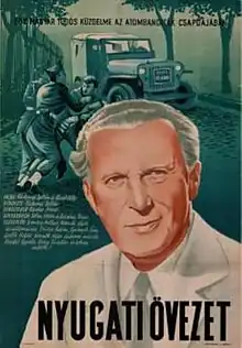 West Zone (Hungarian: Nyugati övezet) is a 1952 Hungarian spy thriller film directed by Zoltán Várkonyi and starring Artúr Somlay, Ádám Szirtes and Sándor Pécsi.[1] [2] It was shot at the Hunnia Studios in Budapest. The film's sets were designed by the art director Mátyás Varga.