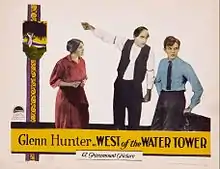 West of the Water Tower is a 1923 American silent comedy drama film produced by Famous Players–Lasky and distributed by Paramount Pictures. It was directed by Rollin S. Sturgeon and is based on the novel of the same name by Homer Croy. Glenn Hunter and May McAvoy are the stars of this film.[1][2]