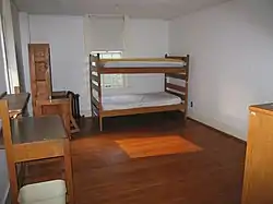 There are ten dormitories in which the over 200 boarding students reside during the school year. The oldest is North Hall, erected in 1838, and the newest is Bicknell House. Each dorm houses students in a single, double, triple, or quad, with shared bathrooms.