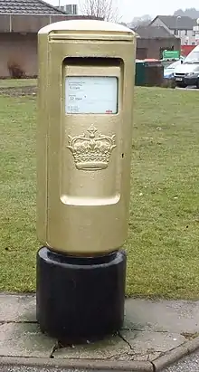 Olympic canoeist Tim Baillie has a gold post box on Westhill Drive in commemoration of his gold medal in the canoe slalom C-2 event in the 2012 Olympics.[12]