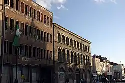 Following the closure of the Spastics League Club, Westmorland House became increasingly derelict and a popular place for graffiti artists to display artwork.[3] This has led to English Heritage classifying the whole Stokes Croft conservation area "at risk".[4] The premises was bought by Comer Homes for redevelopment in 1989, but plans stalled after they were unable to agree with the city council on how to proceed. The building was planned to be redeveloped by the South West Regional Development Agency, but plans were cancelled in 2009 following budget cuts.[5] From 2007, local community group People's Republic of Stokes Croft led initiatives to envisage the redevelopment of the site as a community asset.[6]