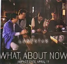 "What About Now" is a song recorded by American country music group Lonestar. It was released in April 2000 as the fourth single from their 1999 album Lonely Grill and it spent four weeks at the top of the Billboard Hot Country Singles & Tracks (now Hot Country Songs) chart. It was written by Ron Harbin, Aaron Barker and Anthony L. Smith.[1]