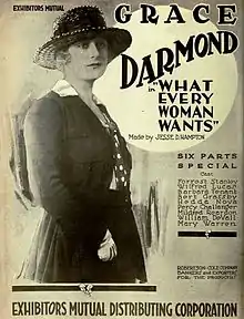 What Every Woman Wants is a 1919 American drama film directed by Jesse D. Hampton and starring Grace Darmond, Wilfred Lucas, Forrest Stanley, and Claire Du Brey. Based on a screenplay by William Parker, the film was released by the Robertson-Cole Pictures Corporation.[1]