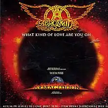 "What Kind of Love Are You On" is a song by American hard rock band Aerosmith. The song, originally a track left off the Nine Lives album, was included on Armageddon: The Album for the 1998 film Armageddon starring lead singer Steven Tyler's daughter Liv Tyler. The song, was released as a promotional single to rock radio, reaching #4 on the Mainstream Rock Tracks chart. It was written by Steven Tyler, guitarist Joe Perry and outside songwriters Jack Blades and Tommy Shaw (both formerly of Damn Yankees). It is the second song written for the film, the other being "I Don't Want to Miss a Thing".